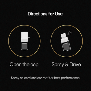 Spray 2–3 times on fabric areas such as floor mats, under seats or soft surfaces. Avoid spraying directly on leather or screens. Let the scent develop for a few moments before you start driving.